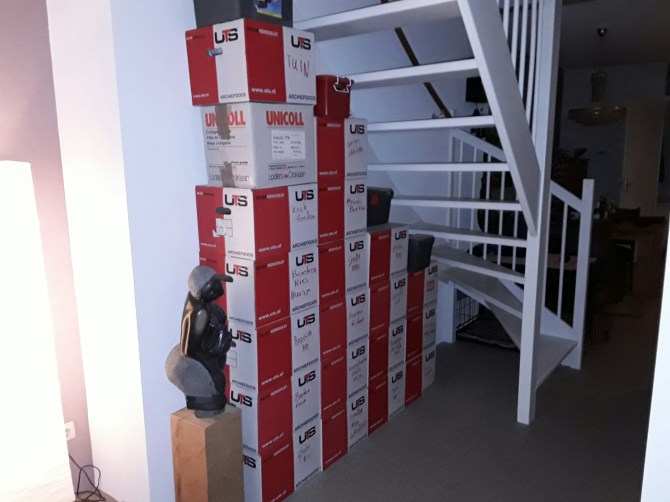 Zoals jullie zien zijn we druk bezig met het inpakken van de spullen. Gelukkig valt het gewicht wat we mee mogen nemen mee. Zodoende toch nog maar wat boeken in gepakt.