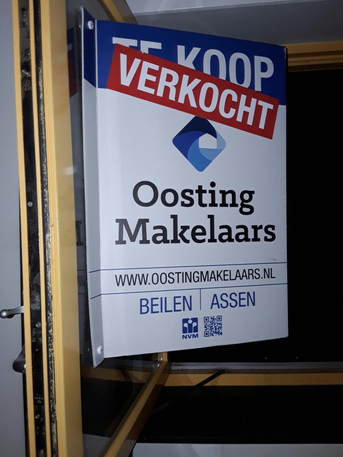 Zoals het bord laat zien is het huis officieel verkocht. De overdracht zal plaatsvinden op maandag 30 januari 2017 om 15.00 uur. Dit is ook de dag dat we de verhuisbus in gaan laden en ’s avonds de boot nemen naar Zweden.