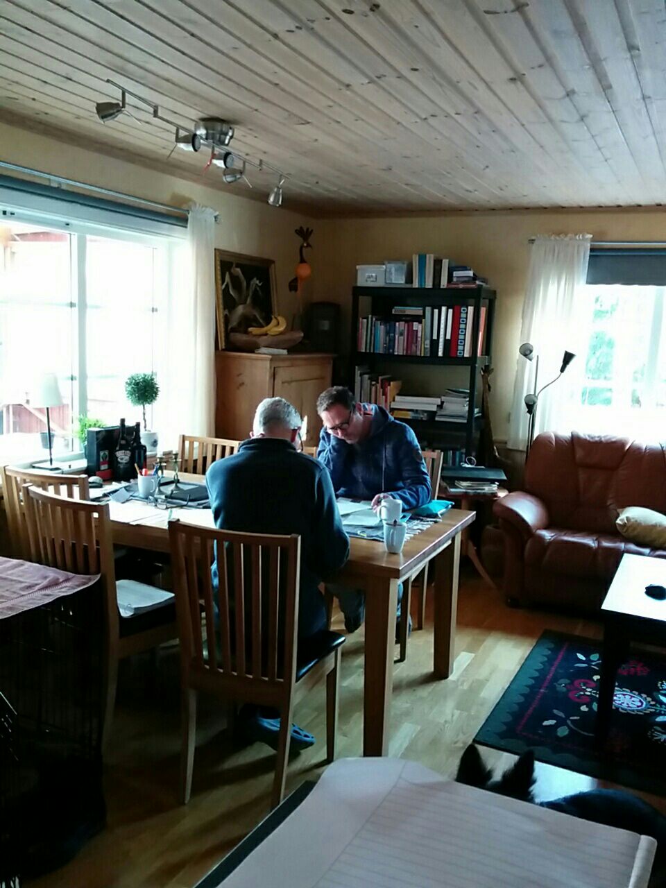 Het was een tikkie koud vandaag. Zelfs in zweden klaagt men hierover. Het is te koud voor de tijd van het jaar. Het is 8 graden ongeveer. Maar we waaiden uit ons hemd. Goed voor het vuurtje, minder goed voor oude botten. Leuk is het om te gaan merken dat de talen steeds meer gaan vermengen. Steeds vaker wordt er zweeds gesproken onderling. En leuk ook om mee te maken dat er meer plannen worden gemaakt om de weekenden door te brengen.