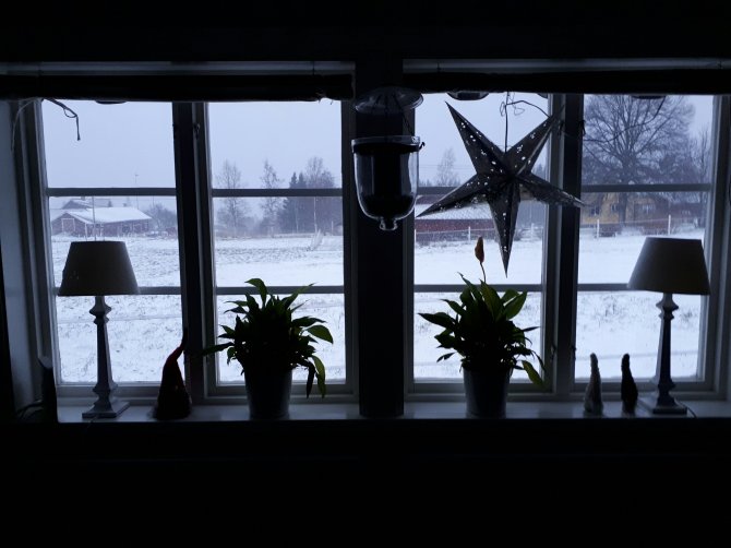 De foto’s zeggen waarschijnlijk wel genoeg. Ze zijn genomen om drie uur ’s middags vanuit het huis terwijl ik zit te wachten op de installateur van canal digital. Vorige week is hij niet komen opdagen, dus wie weet vandaag wel. Gesprekken hier gaan veel over het weer. te koud, te wit…. blijft toch niet liggen, enz. Voor ons geldt dat we niets te klagen hebben. Vaak omdat ik denk “Dit wilde je toch extremer klimaat”, maar ook omdat ik het wel leuk vind zoveel veranderingen in en korte tijd.volgorde van de foto’s