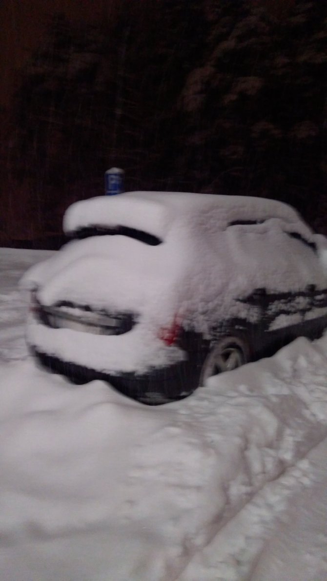 Gistermiddag begon het te sneeuwen. Het heeft inmiddels 24 uur achter elkaar gesneeuwd. Er is meer dan 20cm gevallen. Zo zag de auto eruit toen we vanmiddag van het werk naar huis wilde. Tot onze knieën in de sneeuw.