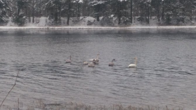 Bij het water aangekomen was er een zwanenfamilie met vijf!!! onvolwassen jongen. Het is hier ook een ander type zwaan… ze hebben gele snavels.