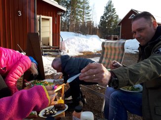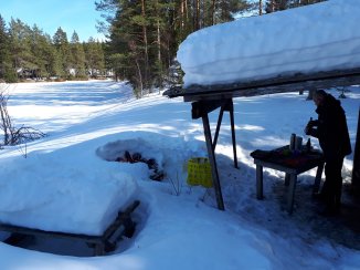 De lente is nu echt op gang. Het is zo wie zo al weken schitterend zonnig weer. Tot aan afgelopen donderdag was het in de nachten nog onder nul. Dat is nu voor eventjes voorbij. Het is ook hier een paar dagen warm. Dit maakt dat de sneeuw in een rap tempo smelt. Er wordt gewaarschuwd voor overstromingen in de lager gelegen delen van Dalarna.