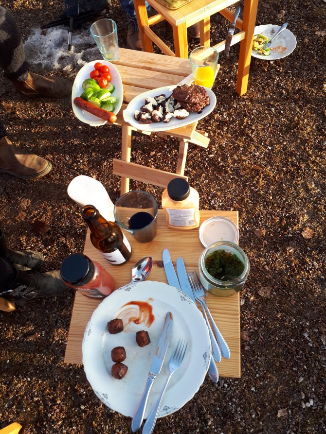 Vanavond hebben we voor het eerst echte zweden in huis gehad. Karin, onze Zweedse juf en haar man Jurgen zijn met dochter Marte komen eten. Het was lange tijd buiten erg lekker, dus konden we ook buiten eten. Als de zon weg is dan is het ook gelijk koud en onder nul.