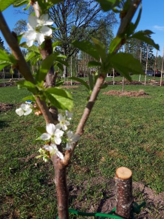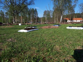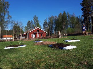 Wij hebben hemelvaartsdag goed besteed en zijn begonnen aan de aanleg van onze bostuin. Hiervoor heb je nodig 9 fruitbomen, bessenstruiken en aardbeienplanten. Dit is het begin, door de maanden heen komt er meer aanplant… en het duurt nog wel even voordat het en bos is. We zitten hier in klimaatzone 6. Hierdoor kunnen we niet zomaar wat neerzetten. We hebben nu bomen die goed het goed doen bij zone 5 a 6. Daarom moeten we extra bescherming aanbrengen. We zijn begonnen aan een windscherm van oude taken uit het bos. Als dieven lopen we ’s avonds langs en slepen dode taken achter ons aan het bod door. We hebben tot november de tijd om het op ongeveer 1 meter hoogte te krijgen.