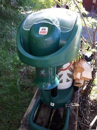 Dit apparaat werkt op gas en batterijen. Er zit een lokstof in een als de beesten in de buurt komen worden ze in het apparaat gezogen. Het lijkt te werken.
