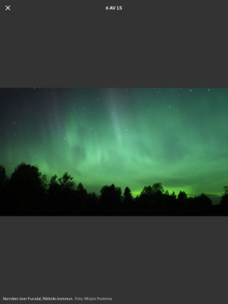 Kom net terug van een laatste rondje met de hond. Zie ik in de verte licht branden. Een soort van voetbalveldverlichting. Kijk ik nog even op de app en ja hoor het noorderlicht. Dus direct weer naar buiten en het donker opgezocht. En voor de rest zou ik een dichter of een romanschrijver moeten zijn om te beschrijven wat we zagen. Een groen gordijn in de lucht. Langs zwaaiende rookslierten . Dansende mist. Groene nevelslierten. Diamantschaduw. Zo mooi. De hele tijd verwacht je dat het noorderlicht ook geluid gaat maken, maar dat gebeurt niet. Geprobeerd het op video vast te leggen, maar dat werd het niet. Dan is de wereld ineens weer een stuk groter en mooier dan ik steeds heb gedacht. Wat en waanzinnig fenomeen.