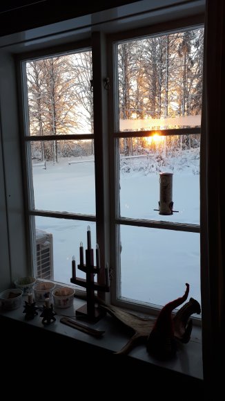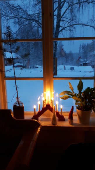 In Zweden is 24.12 de avond van het kerstfeest. Alle winkels zijn gesloten, iedereen reist naar familiebijeenkomsten, of het vakantiehuisje. Ook het diner staat redelijk vast. Haring, worstjes, gehaktballetjes, aardappels met ansjovis. Ik geef toe in het Zweeds klinkt en smaakt het beter dan hier geschreven. Wij doen nog niet mee aan deze traditie; wij vieren morgen gewoon kerst.