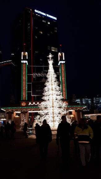 Deze week moest ik voor een cursus naar Göteborg, een kleine 8 uur met de trein. En omdat de baas betaalde, en ik nog een aantal overuren had, heb ik twee dagen de tijd om de stad te verkennen. Het eerste wat opviel was dat de stad kleiner is dan gedacht. Ik heb vanochtend en stadswandeling gedaan en was binnen twee uur uit een thuis en had alle attracties gezien. Toen het donker begon te worden ben ik naar de kerstmarkt gelopen. De kerstmarkt is in een pretparkje (typ Efteling), midden in de stad. Aan de versiering is veel werk besteed en er liepen koortjes rond die kerstliedjes zongen. Erg goed om in de sfeer te komen.