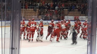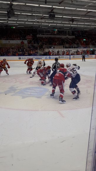 Gisteravond was het daags voor een nieuwe ervaring: een poging te gaan houden van ijshockey, Zwedens nationale sport. Met 7 collega’s zijn we eerst wezen eten en daarna hebben we de wedstrijd gekeken. We hadden nu niet direct de beste plekken om het spel te zien, maar dat mag de pret niet drukken. Mijn ervaring: ik keek steeds naar het verkeerde deel van de wedstrijd. Naast mij werden allerlei geluidjes gemaakt zoals ‘oei’ en ‘neej’, en steeds zat ik naar iets te kijken wat daar geen verband mee hield. Dus probeerde ik de puck te volgen. Lukte niet, dat gaat zo ongelooflijk hard. Ik heb nog een poging gedaan om dan maar de controle te richten op de scheidsrechter, maar dat waren er vier tegelijkertijd.