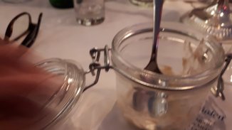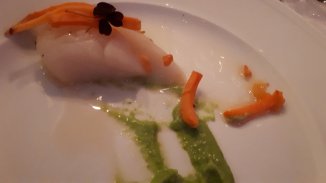 Dus net te laat een foto van het voorgerecht, de ober die een foto van ons maakt.