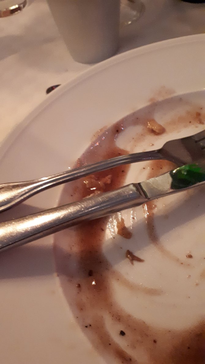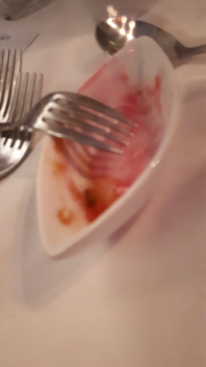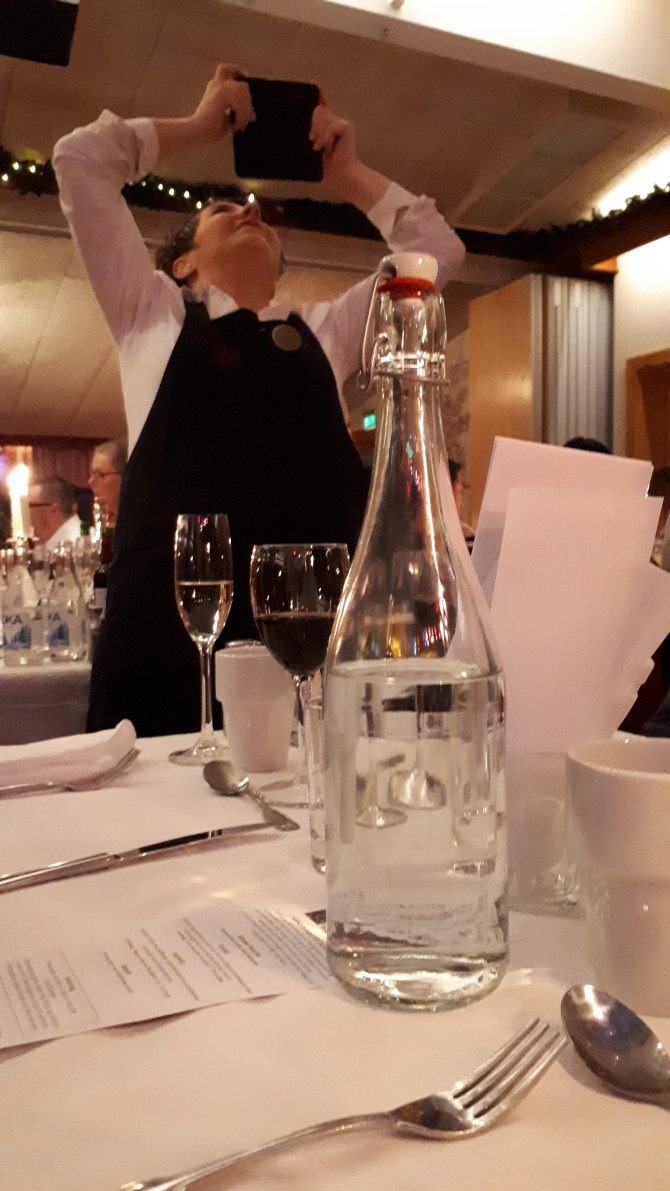 Dus net te laat een foto van het voorgerecht, de ober die een foto van ons maakt.