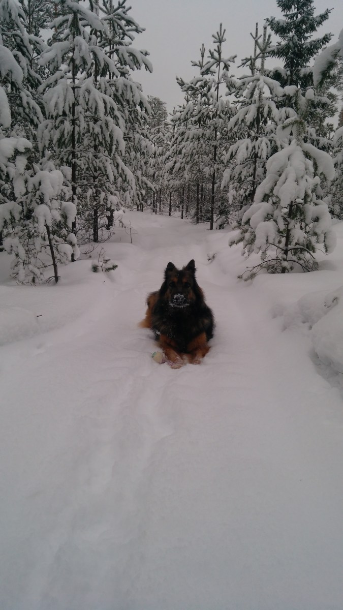 hond in de sneeuw