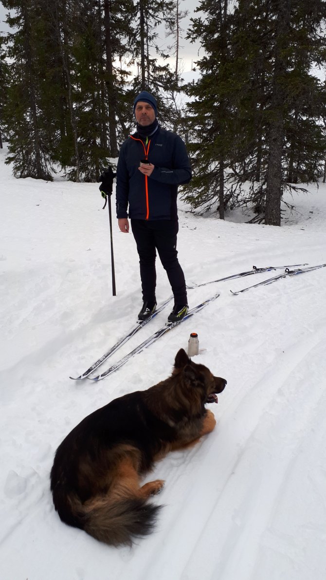 Vandaag zijn we met zijn drietjes wezen langlaufen. De baan is hier op zondagmiddag ook open voor honden. We hebben een rondje van 10 kilometer gedaan. Heerlijk weer, zalig stil (geen mens gezien) en natuurlijk als rechtgeaarde Nederlander altijd wat te klagen…. Weet je hoe vervelend het is als je lekker laupt te langen en dat je dan moet constateren dat er gewoon een eland over je spoor loopt. Bah.