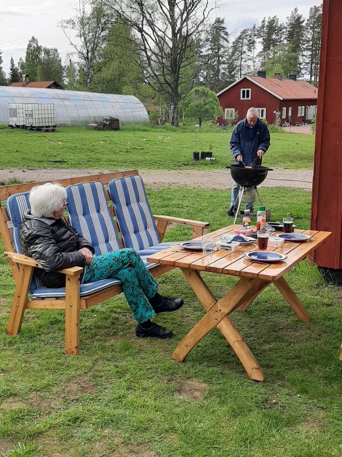 Afgelopen vrijdag is John zijn moeder voor een paar daagjes naar ons toe gekomen. Morgen helaas al weer weg.Vandaag is er ietsje warmere lucht gearriveerd dus kunnen we lekker buiten bezig zijn.Zieke kip is volop in behandeling, maar het gaat waarschijnlijk niet lukken met onze acties. Dus dat wordt een operatie….Eerst maar eens bbq-en…en bijbruinen.