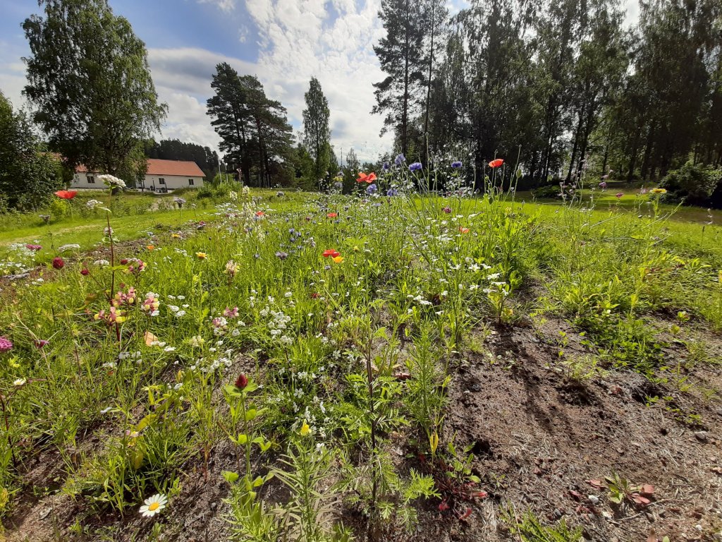 Het plan is om volgend jaar bijen te nemen. Daarom moeten er op verschillende plekken bloemen bij. Op deze foto en halfgelukte poging met van alles waar we nog hadden liggen.