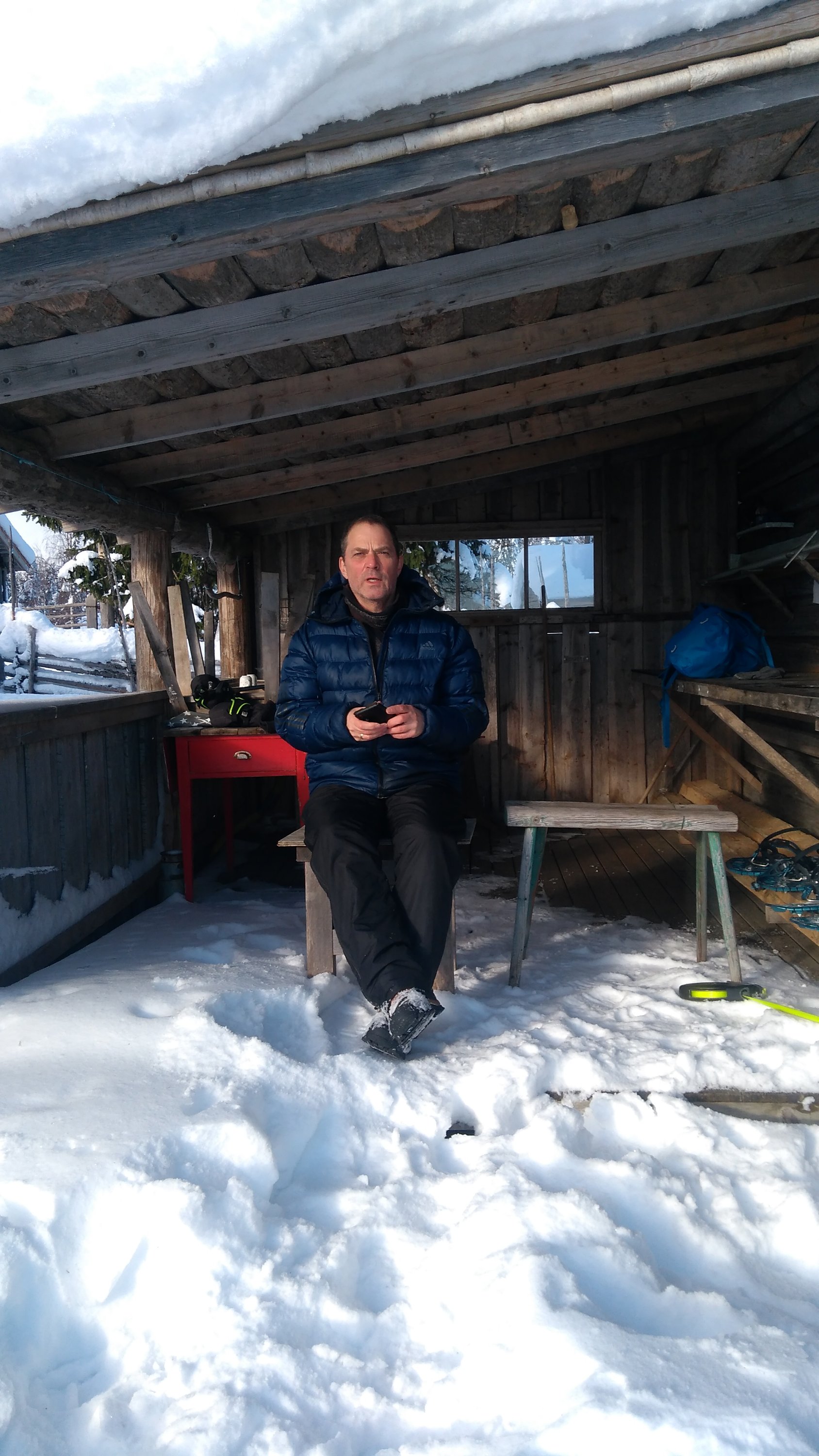 Ärteråsen is een zomerboerderij van wat langer geleden. Nu worden er zomers wat koeien gehouden en wordt er koffie en thee geserveerd. John kwam op het lumineuze idee te proberen of we er met de sneeuwschoenen konden komen. Het beloofde een mooie zonnige dag te worden, dus waarom niet.
