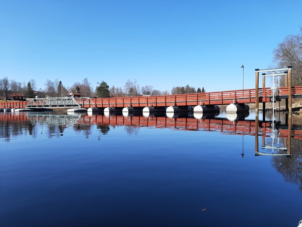 Nog steeds bezig met John zijn verjaardagsuitje. Vandaag een combinatie van cultuur en natuur. Eerst een autoritje door de omgeving gedaan. Op zoek naar een van de weinig overgebleven drijvende bruggen in Zweden. Hier in de buurt drijven er twee. Een voor auto’s, de ander voor fietsers.