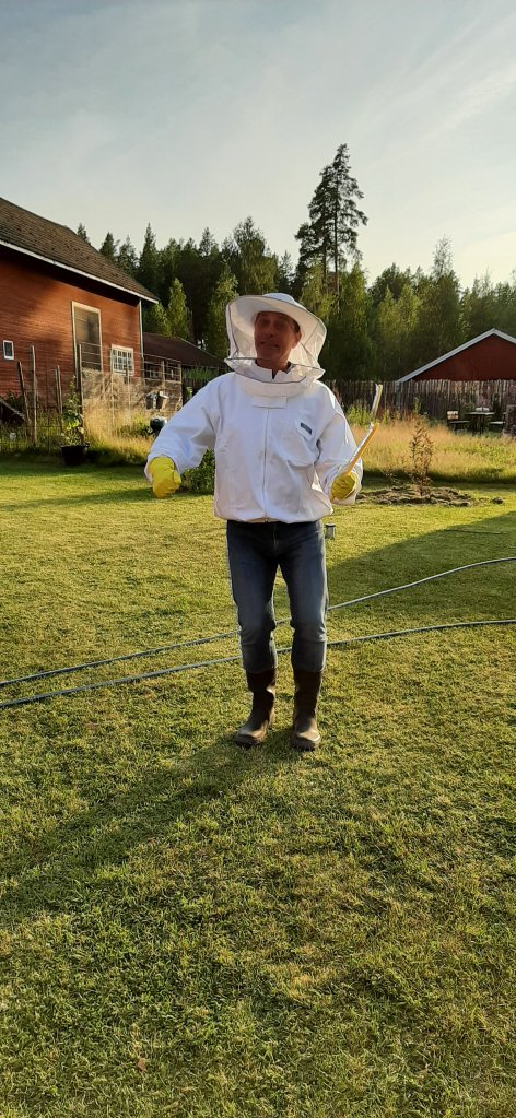Gisteren kwam eindelijk het lang verwachte telefoontje; de bijen waren klaar om afgehaald te worden. Dat gebeurt bij voorkeur zeer laat op de avond, of erg vroeg op de morgen. We kwamen tot het compromis 22.00 uur. Wat blijkt? Familie is nog niet zo groot en heeft wat weinig te eten. De koningin is wel hard aan het werk. Dat betekent bijvoeren en met rust laten. Het voordeel was dat ik Sek 500 korting heb gekregen.
