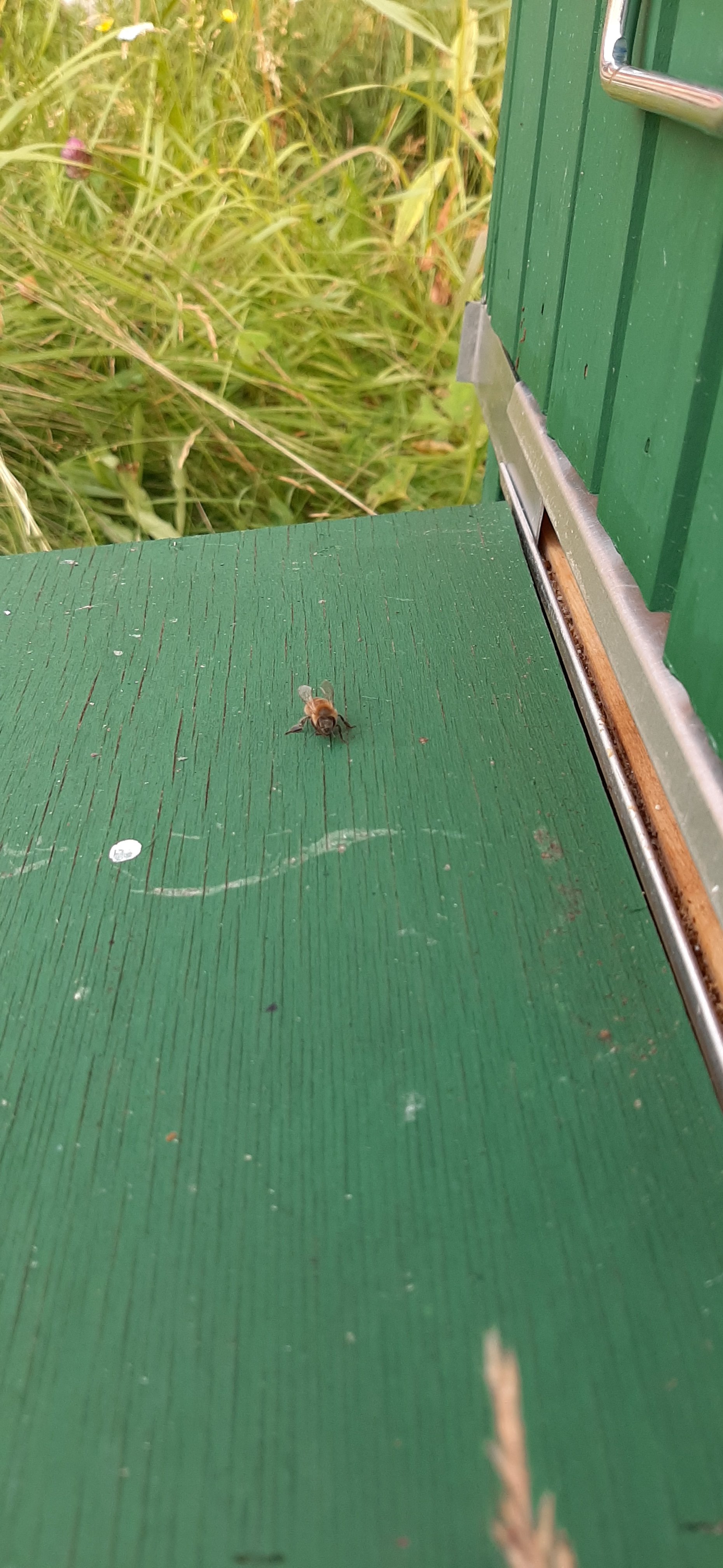 Bij thuiskomst op de plek van bestemming gezet, extra honing gegeven en (tegen het advies in) de schuifjes op een kiertje gezet zodat ze de volgende dag vroeg naar bijen zouden kunnen.