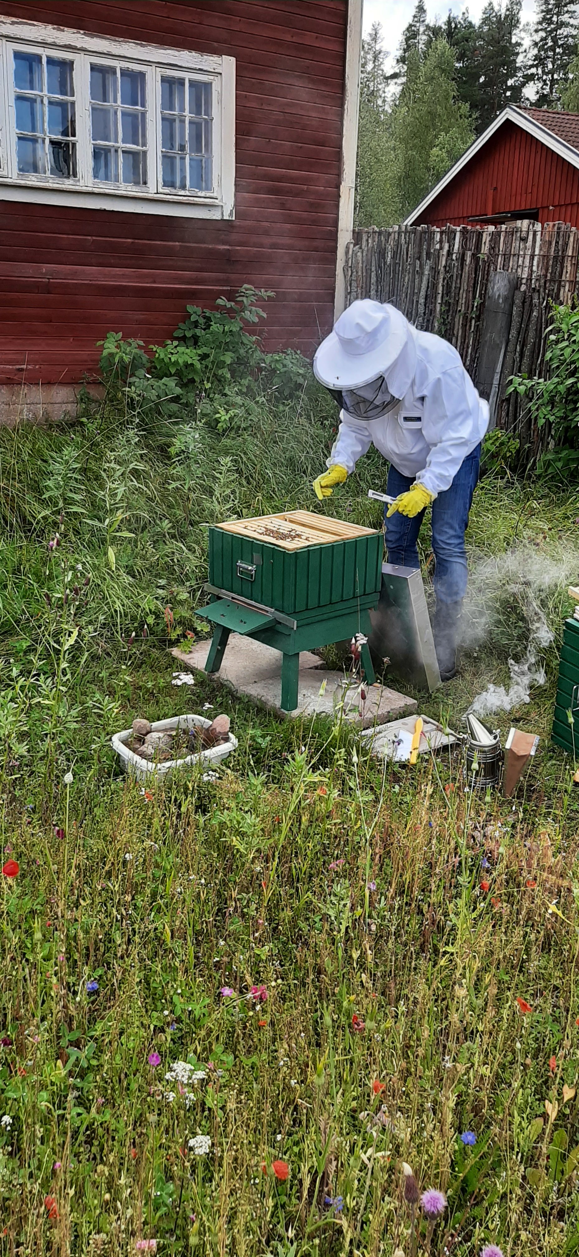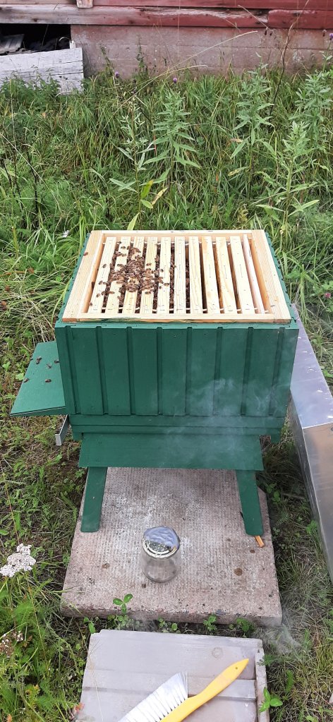 Vandaag ook voor de eerste keer de bijen gecontroleerd (spannend!). De koningin leeft en legt eieren. De werkbijen verzamelen honing. Ik denk dat ze nu ongeveer 30 kilo hebben verzameld. In ieder geval niet genoeg om de winter door te komen. Ik hoop dat er nog tijd is voor hen om alles bij te werken, anders hebben ze hulp nodig. En wordt het onzeker of ze de winter wel gaan halen. In deze tijd van het jaar heeft een bijenkorf zo’n 60.000 bijen, ik denk dat wij rond de 15000 zitten.