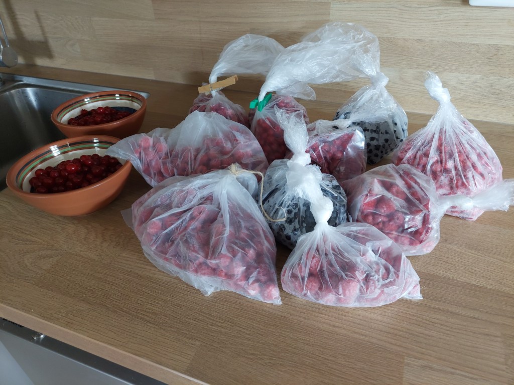 We hebben de afgelopen twee weken niet stil gezeten. Het is bessen tijd en zodoende bessen geplukt, jam gemaakt en natuurlijk ingevroren.