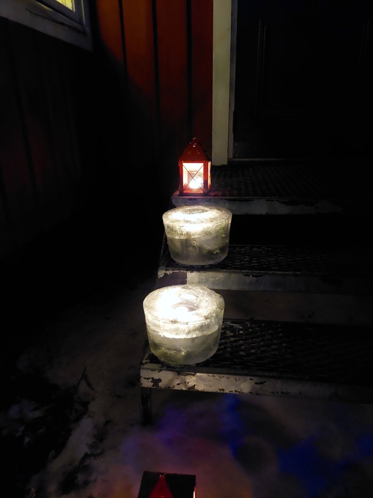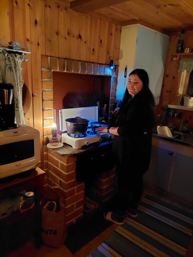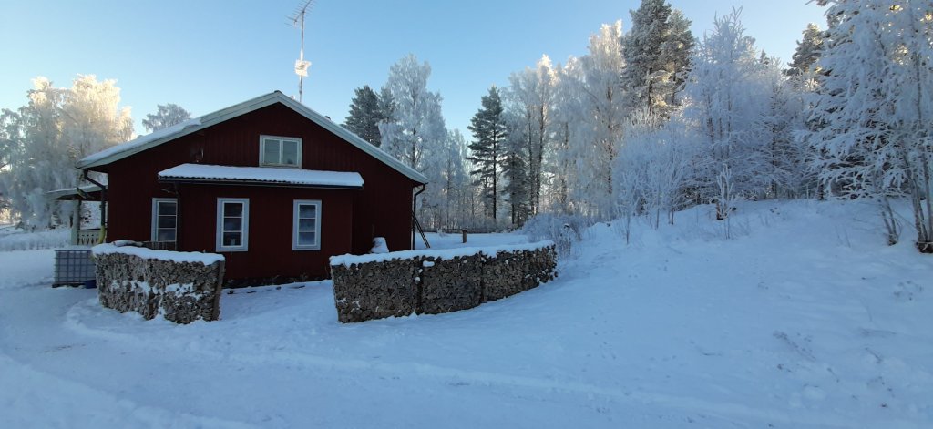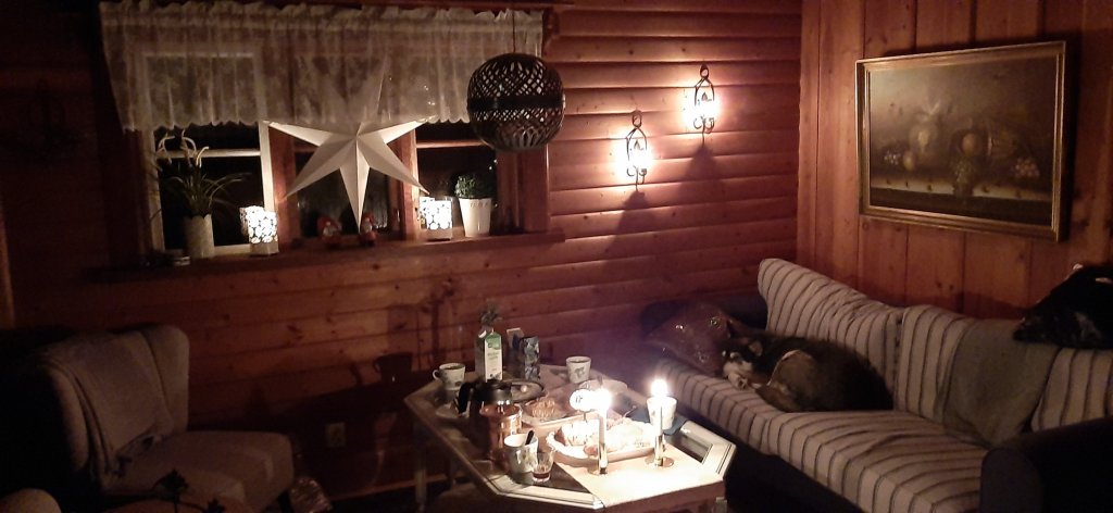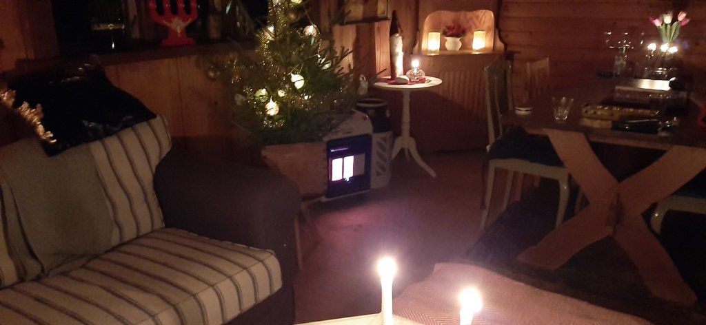 Het grappige van dit soort vakantiehuizen (stugor) is dat er geen stromend water is, geen elektriciteit. De wc staat vaak achter in de tuin en is niet meer dan een gat in de grond met een wcbril erboven (utedass). En ik zal je zeggen, het is geen pretje om je plasje te doen bij deze temperatuur. Binnen in het huis wordt de boel verlicht met kaarsen. Erg gezellig en romantisch allemaal.