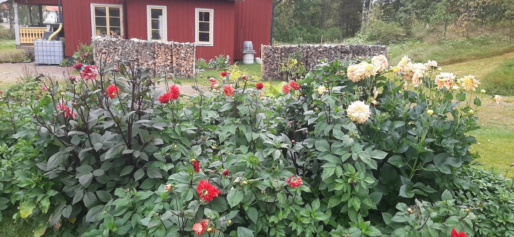Inmiddels is hier de herfst onderweg. De eerste nachtvorst is geweest (vandaar dit dahliaverhaal). Nu kunnen we alles nog redden met vliesdoek maar niemand weet voor hoe lang. In de kas zijn de paprika’s en meloen nog niet klaar. Duimen maar, dat het voorlopig alleen maar nachtvorst blijft.