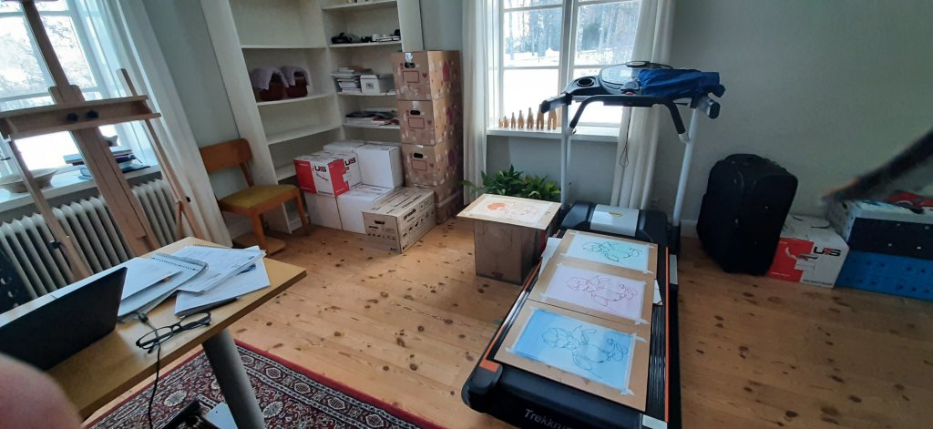 De computer staat aan voor het regelen van de administratie zoals internet regelen contacten opzeggen en nieuwe afsluiten. En in de tussentijd bezig met de eindopdracht van de schildercursus.