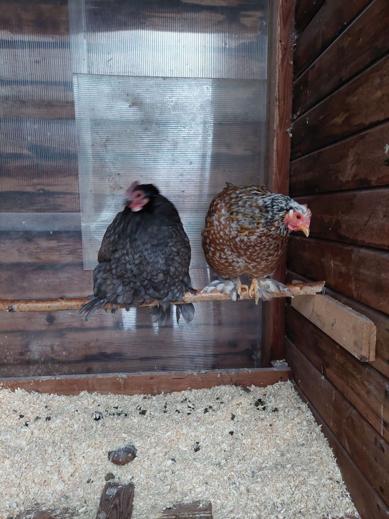 En dan afscheid nemen van “bruintje” en “zwartje”. Bruintje is de enige overgebleven kip uit de groep die we kochten toe we hier net waren. Ze is dus zo’n jaar of zeven. Gaat volledig haar eigen gang, kletst veel en is “gemakkelijk in het contact”. En heeft zwartje geaccepteerd als haar schaduw. Ze lopen los door de tuin. Jammer dat ze niet mee konden verhuizen. Fijn dat ze geadopteerd zijn.