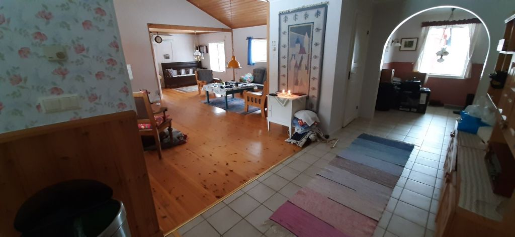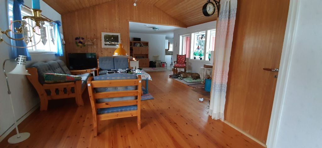Er valt nog niet zo heel veel te zeggen. De beste beschrijving is misschien wel dat we “zitten in een gedateerd vakantiehuisje”. Overal hangt teringzooi, lelijke lampen, gedateerde meubelen, schilderijtjes en lelijke kleedjes op de vloer. Maar het is droog, het wordt langzaam warmer, en de bank zit lekker.