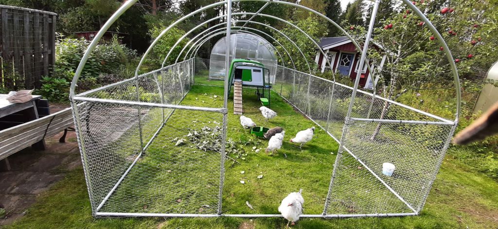 Druk aan de gang met onze poging het overleven van de kippen zeker te stellen en ze toch een leuke plek te geven. Volgens de zweedse overheid moet een kip 0.75m2 buitenruimte hebben. Volgend de scharrelkipnorm is dat 3m2. Daar zijn we dan ook maar vanuit gegaan. We hopen maar dat de dames en heer het er ook mee eens zijn en dat het goed en veilig is.