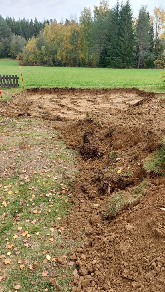 Vandaag is de grote graafmeneer langs geweest en zijn we begonnen met de aanleg van de parkeerplaats waarbij tegelijkertijd de voorbereidingen voor een carport worden gedaan.