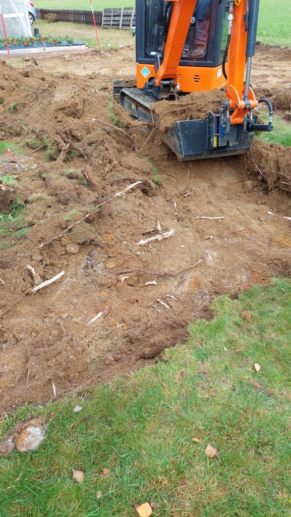 Het tuinontwerp dat we in ons hoofd hadden moet nu ook helema op de schop. Maar daar hebben we straks de hele winter voor….