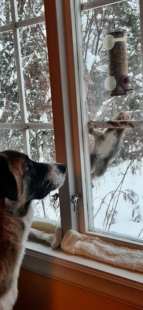 Het blijven geinige diertjes met goede acrobatische vermogens. Leuk om ’s ochtends een poosje naar te kijken.