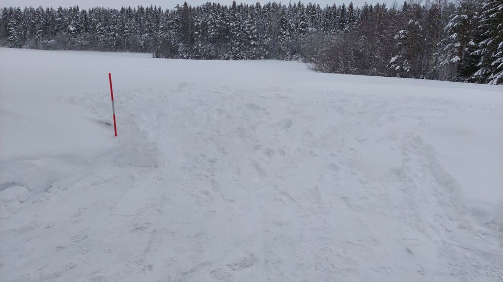 Dan maar met een grote sneeuwschuiver een berg maken naast de parkeerplaats. Hebben we gelijk ons eigen slalom parcour.