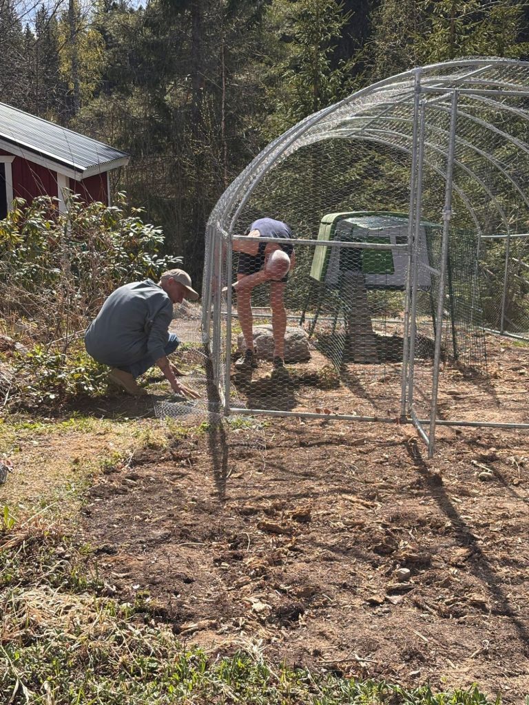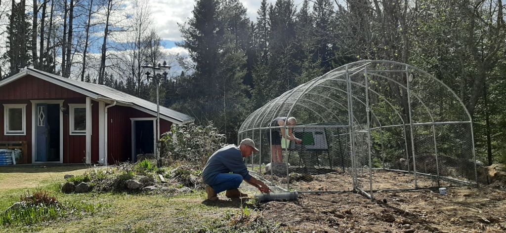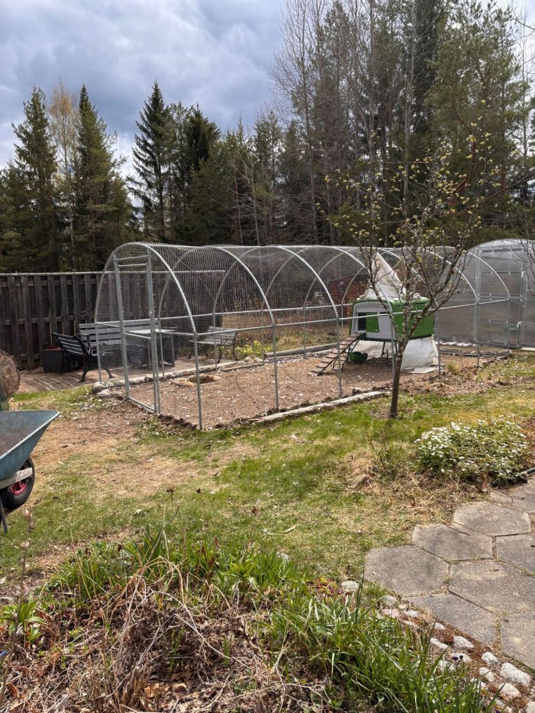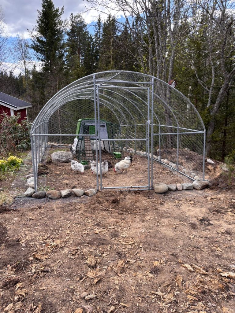Bij thuiskomst de grote klus aangepakt. Kippenren verhuizen. Ging prima en makkelijk. Kippen zijn er blij mee en wij ook.